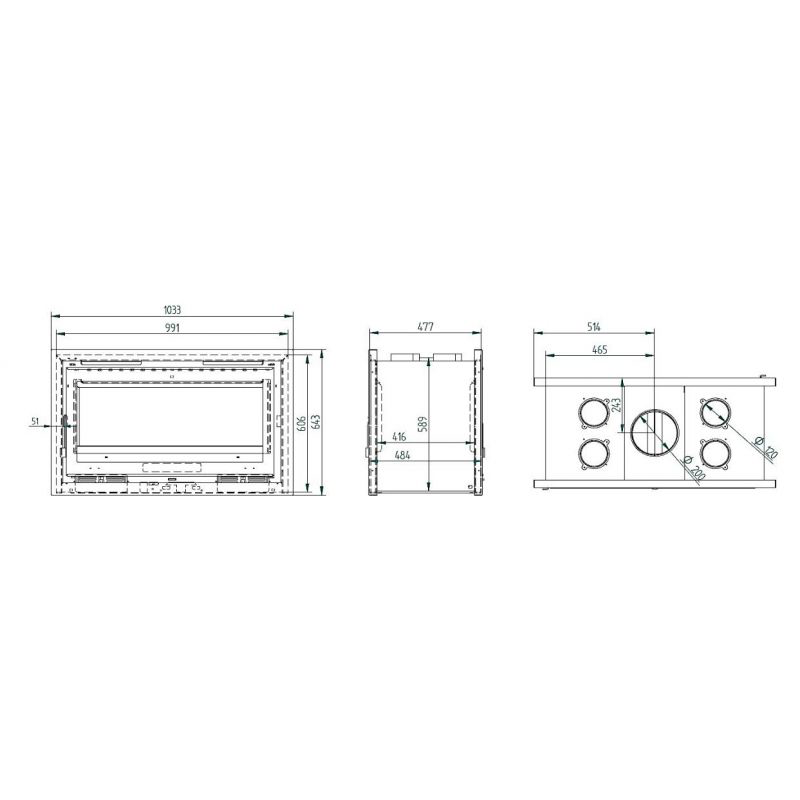 Caractéristiques techniques de l’Insert à bois ventilé double face – FIREMATIC Sana 13.3 kW