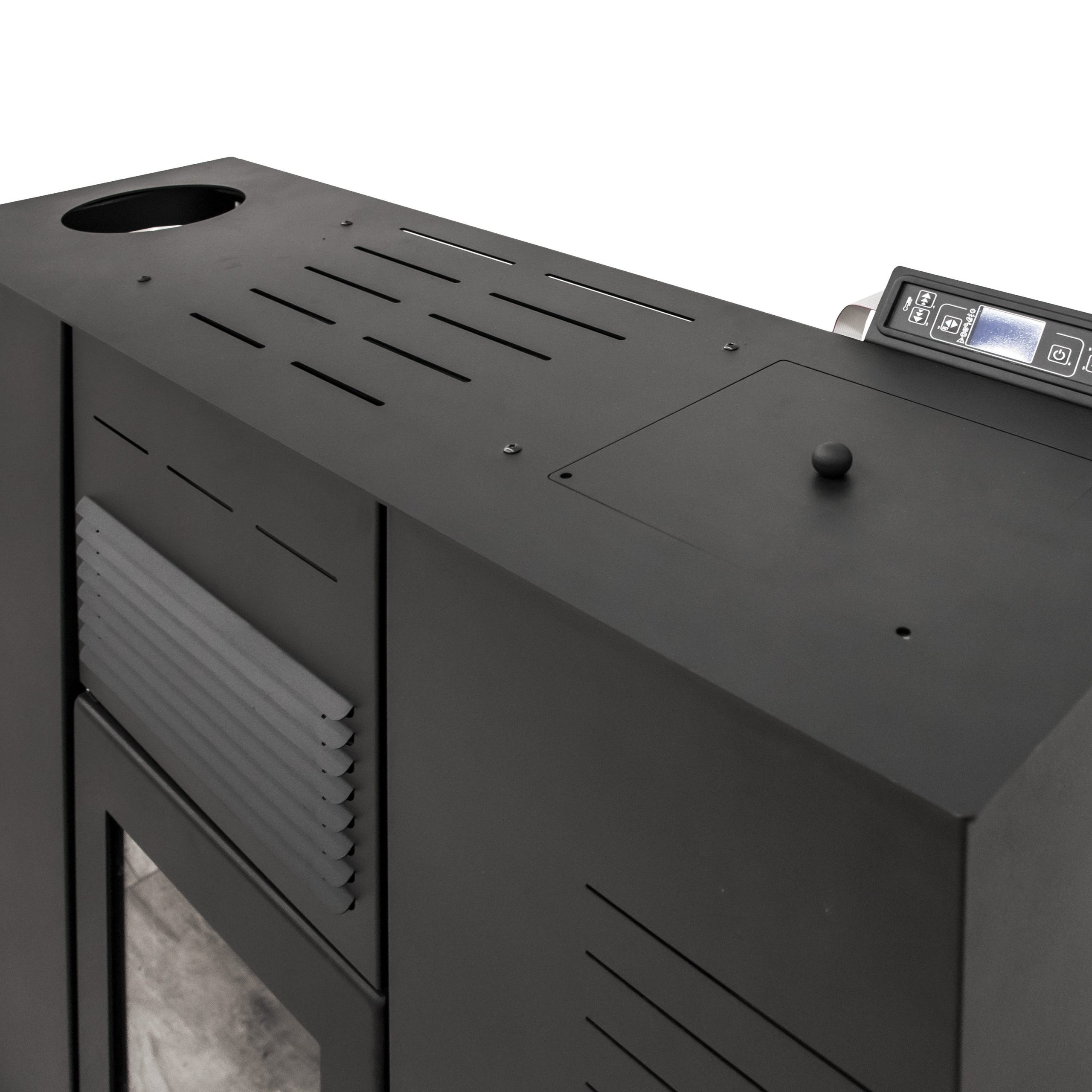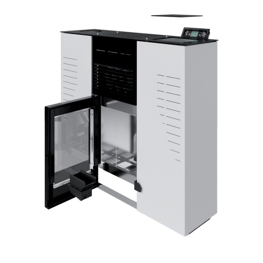Grâce à son design extra plat, ce poêle à granulés ventilé étanche ,unique en son genre, est équipé intérieurement d’un tube coaxial pour occuper très peu de place (seulement 33 cm de profondeur). Il offre la possibilité d’avoir la sortie de fumées en haut ou à l’arrière, ce qui lui permet d’être installé dans des lieux étroits tels que des couloirs ou des entrées de maisons.